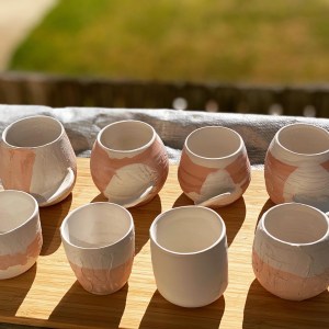 Glazing is so time consuming so this time I decided to concentrate on very few. Four to be exact. One for the mugs, one for the bowls and two (combined) for the others. As it is wood firing I left quite a few with no glaze. Hoping the wood would do the work for me.
