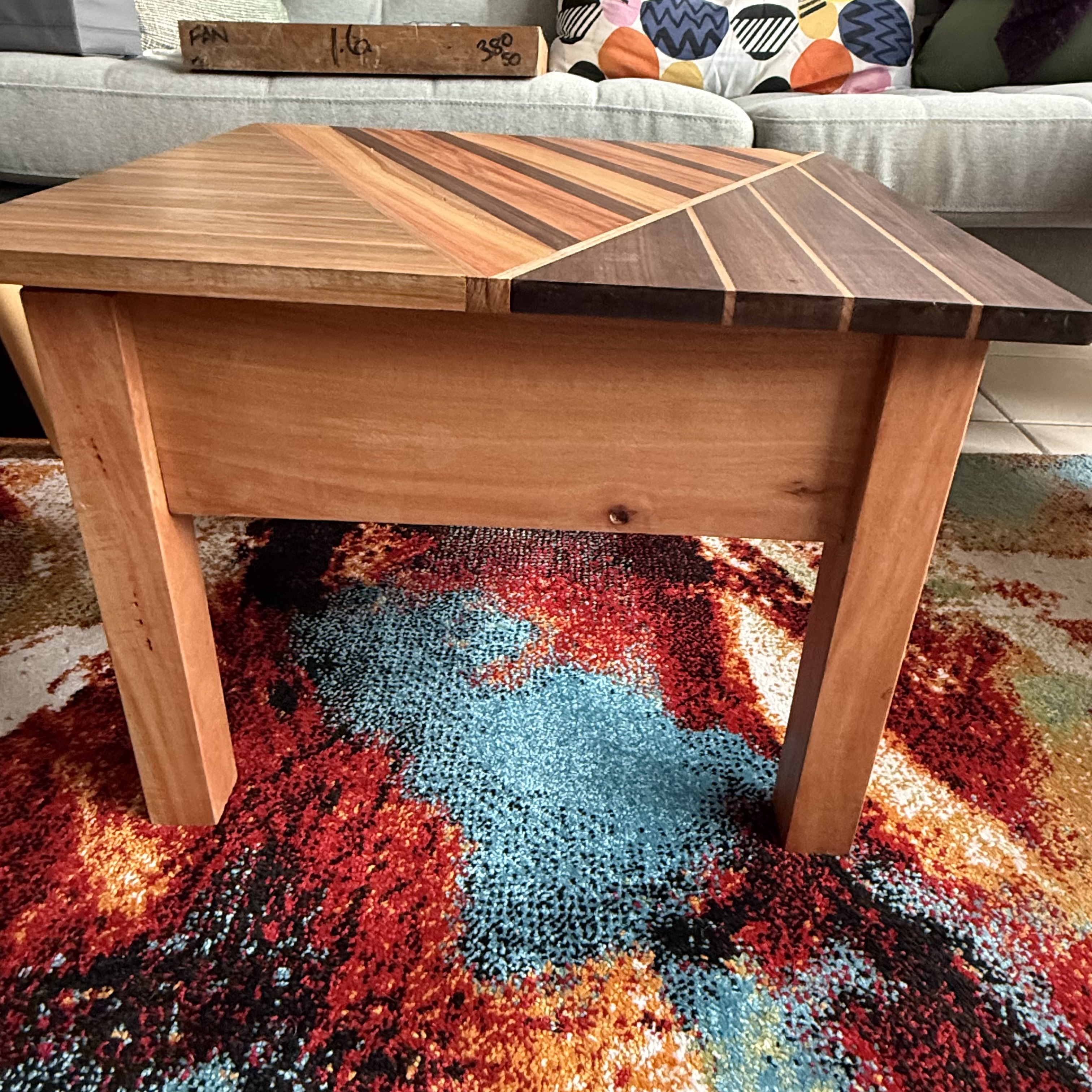 I’ve been busy with my coffee table adventure and here is the result: