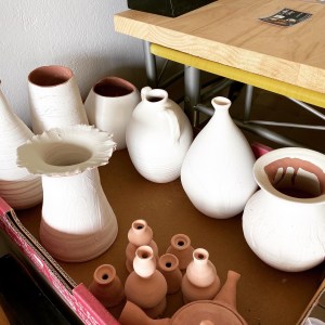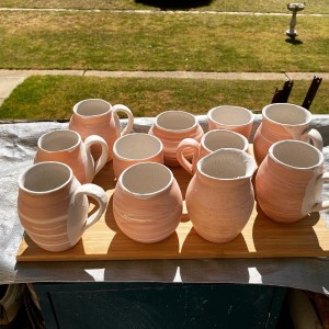 Here are some pots with glazes. Sometimes I like the way they look before the firing more than after…
